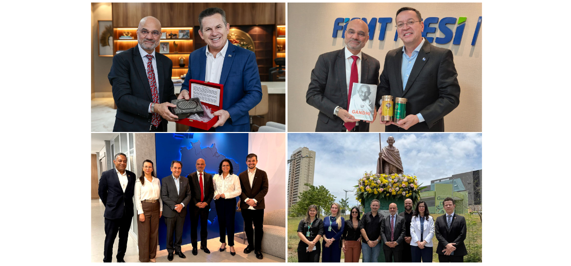 On his first visit to Cuiaba, Ambassador Shri Dinesh Bhatia met Mauro Mendes, Governor of Mato Grosso, the Presidents of Federation of Industries and SEBRAE and visited statue of Mahatma Gandhi (October 2025).