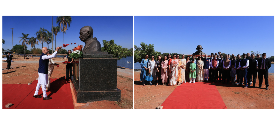 Commemorating Mahatma Gandhi's birth anniversary, Ambassador Dinesh Bhatia & Mrs. Seema Bhatia paid floral tributes at Gandhi bust in Brasilia (02 October 2025).